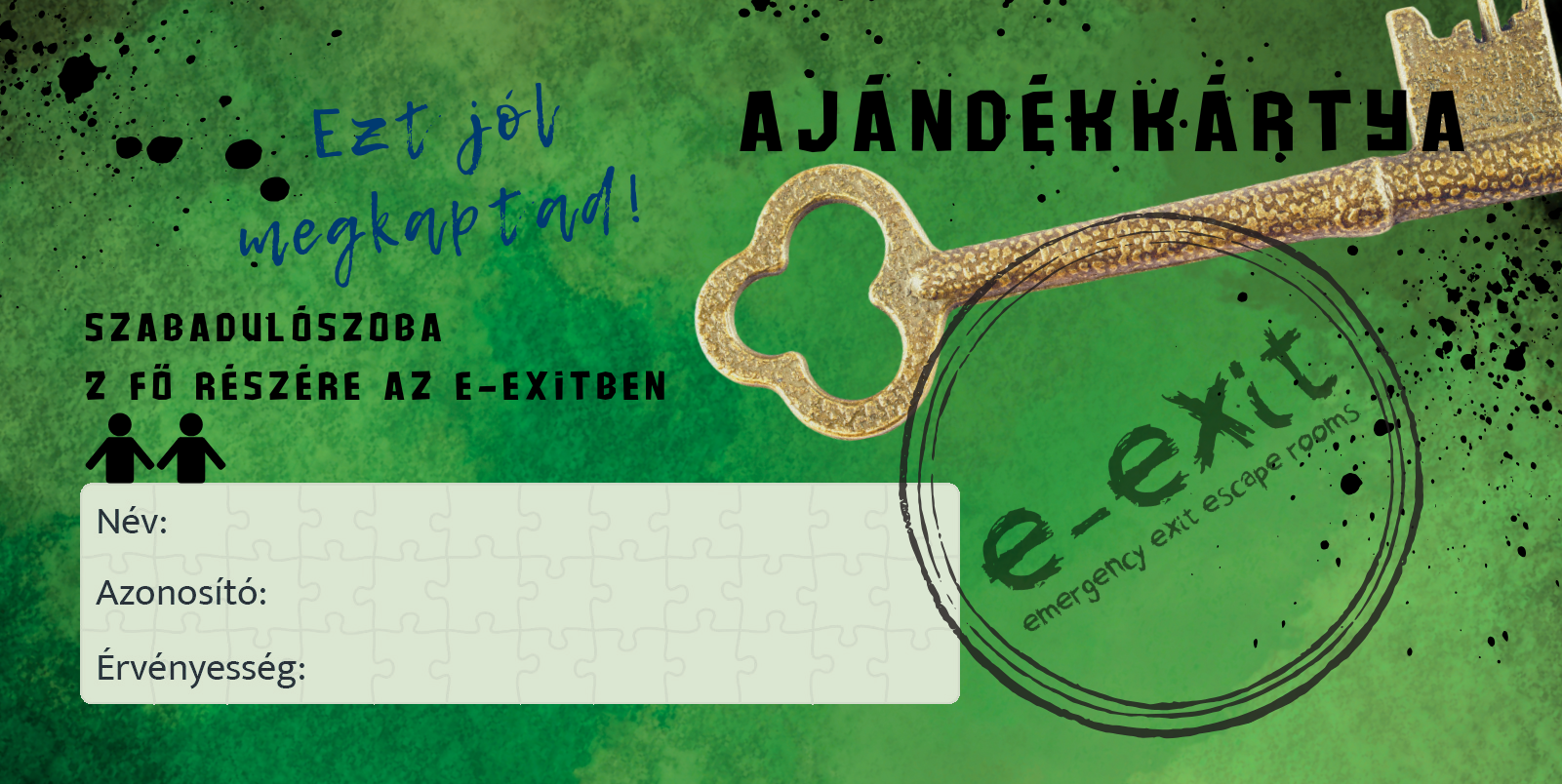 Give your loved ones the gift of an experience! You can come with up to six people, and with this gift card, you can redeem the participation fee for 2 people in your group in any of our rooms. You can give it to couples, families, or friends, so you don't have to find a unique gift for everyone! This way, you can save energy, time, and money, and what's even better: you can give a unique and memorable experience as a gift.